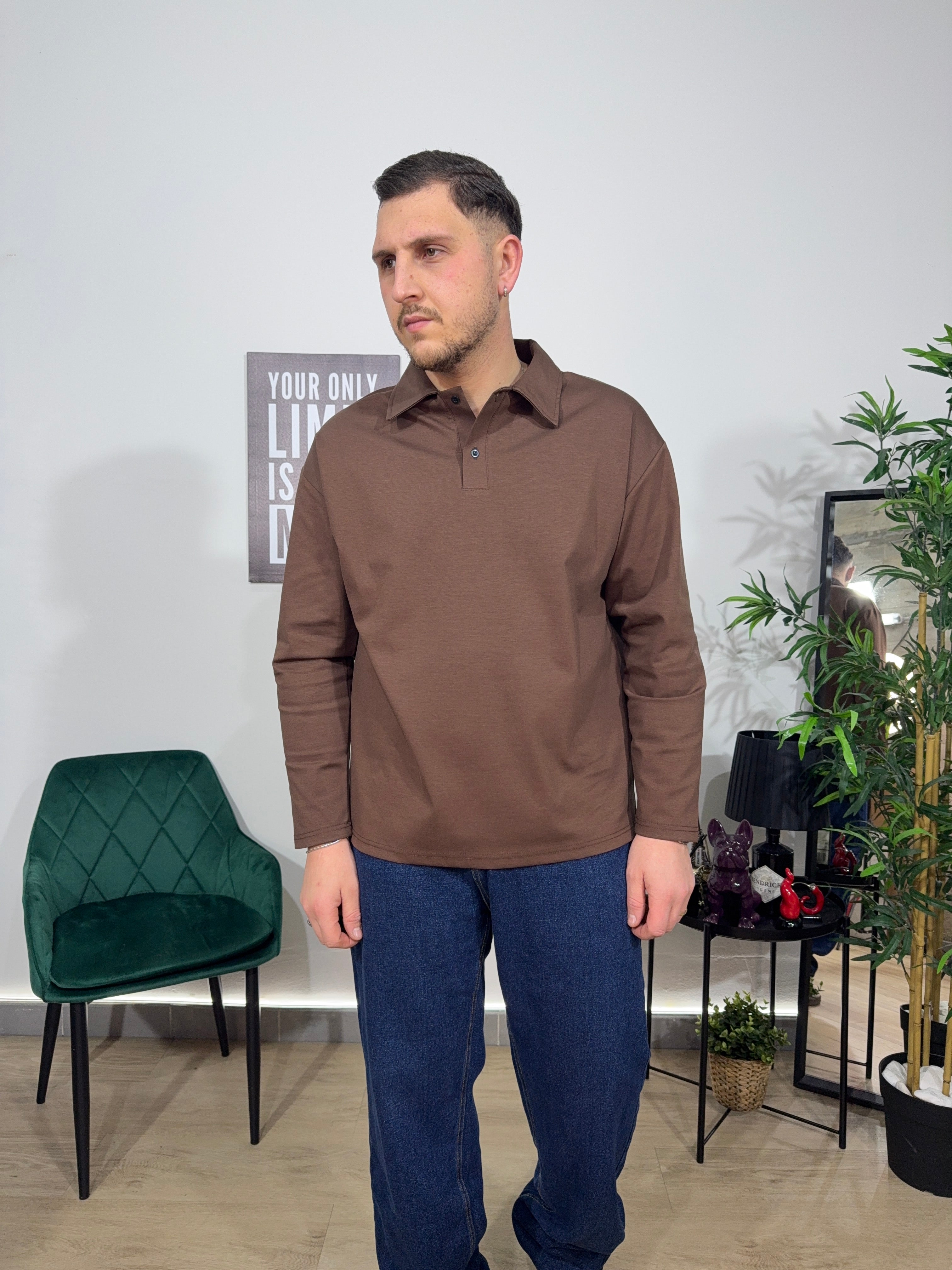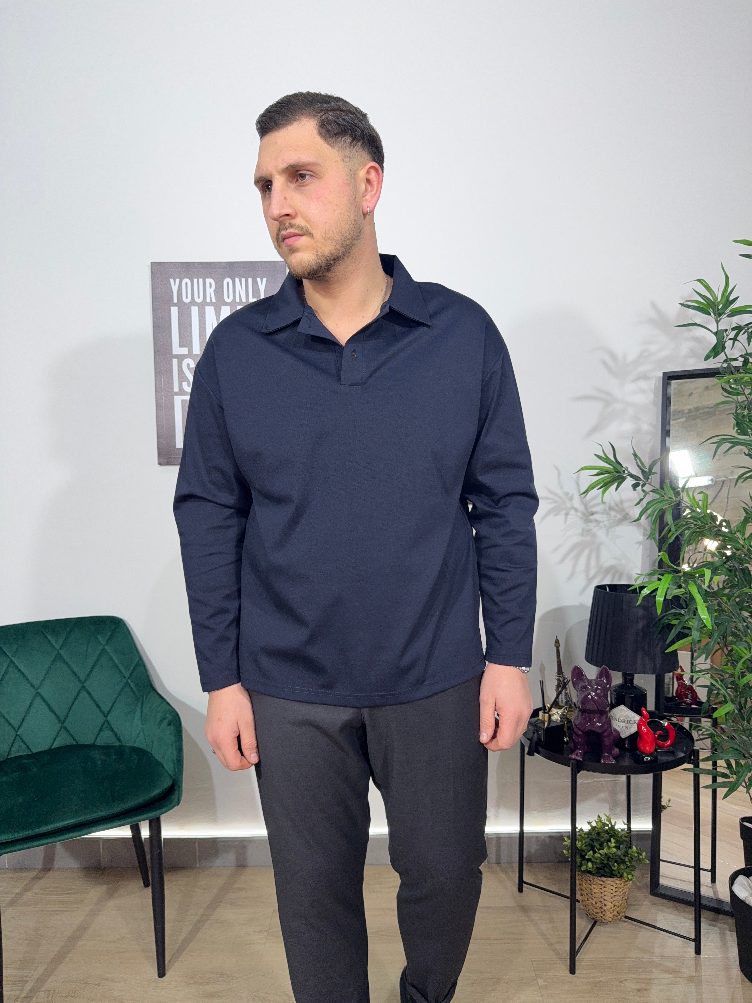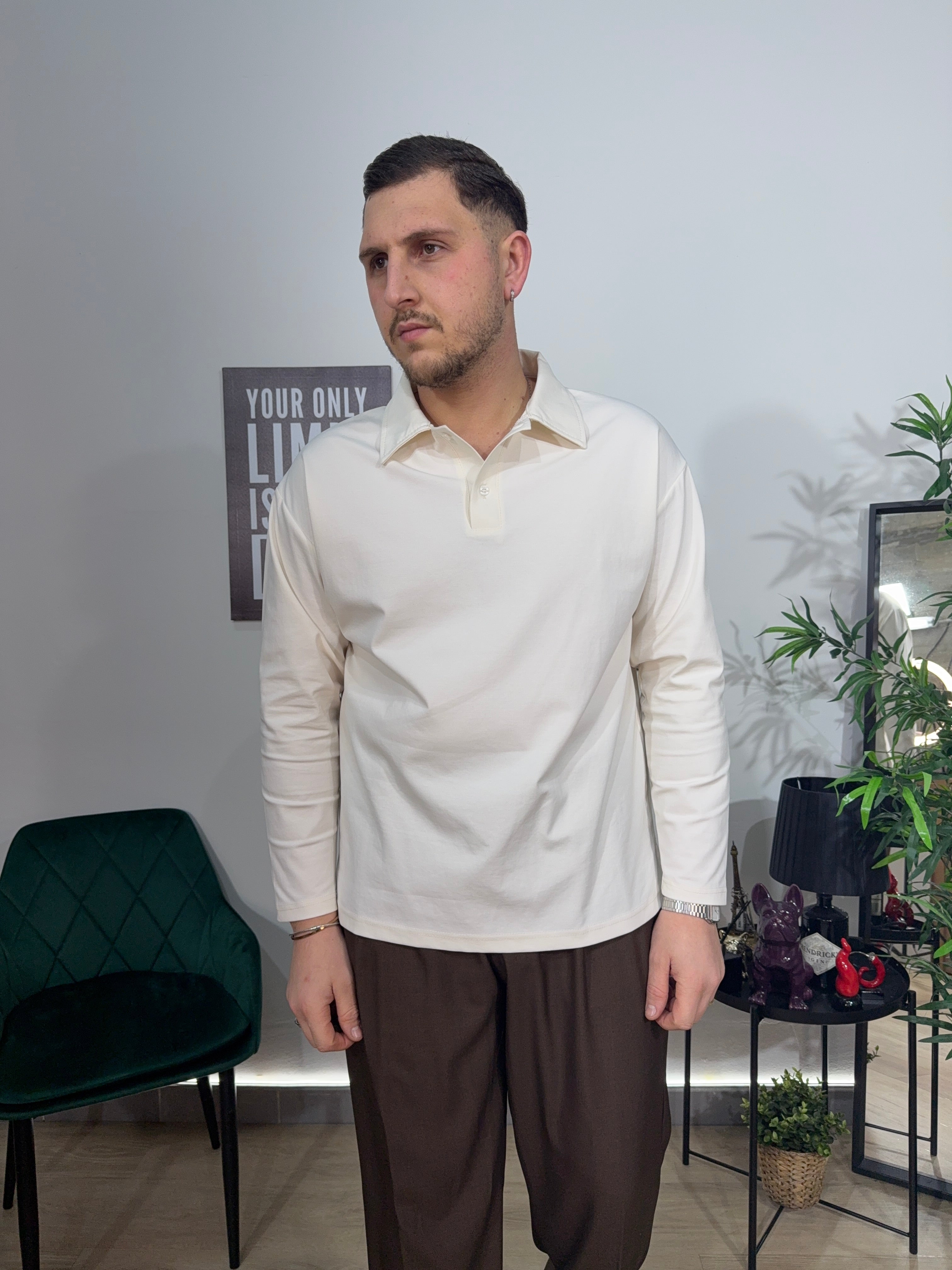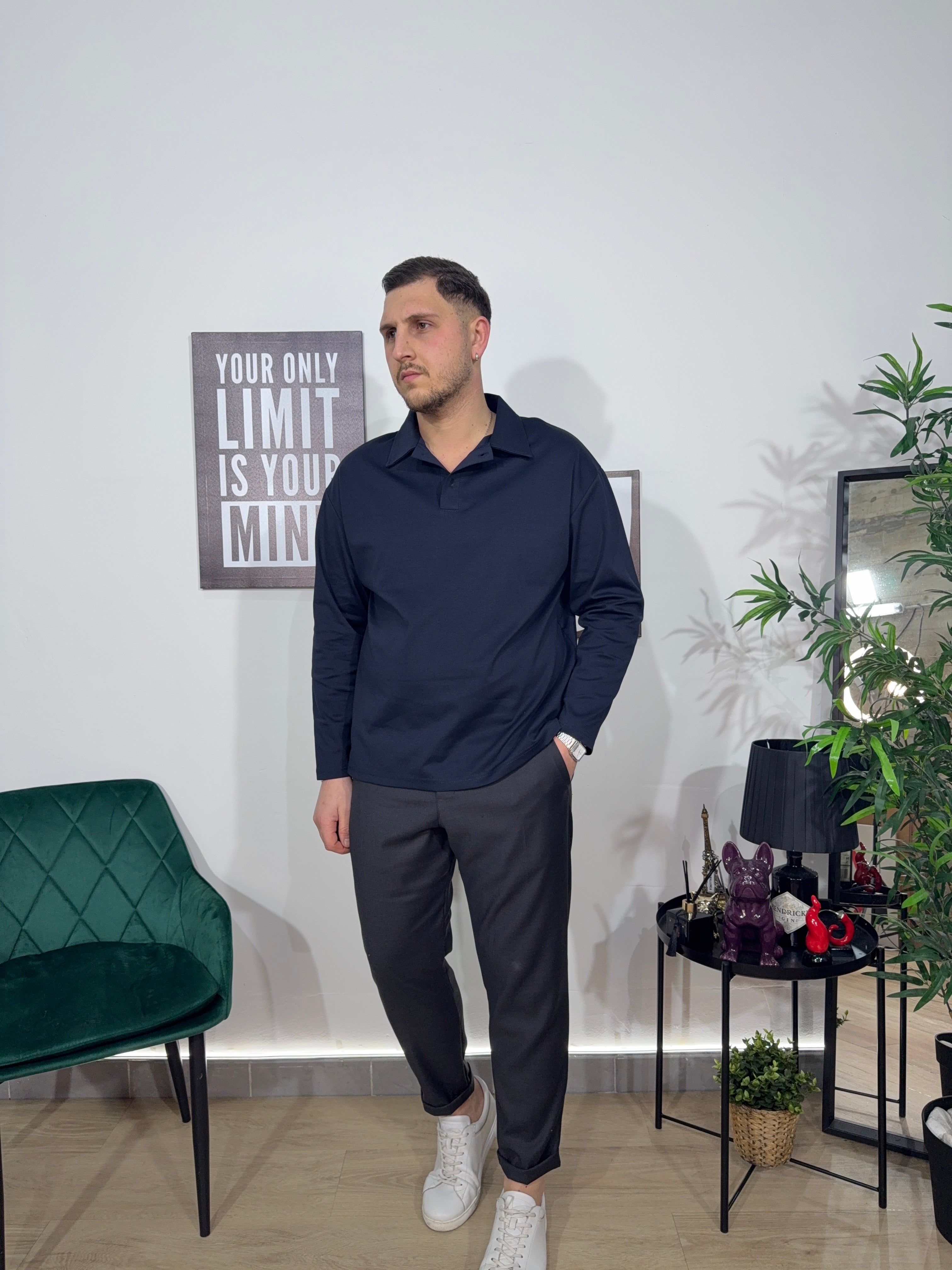 Polo in tessuto Milano con chiusura a bottoni fit regular