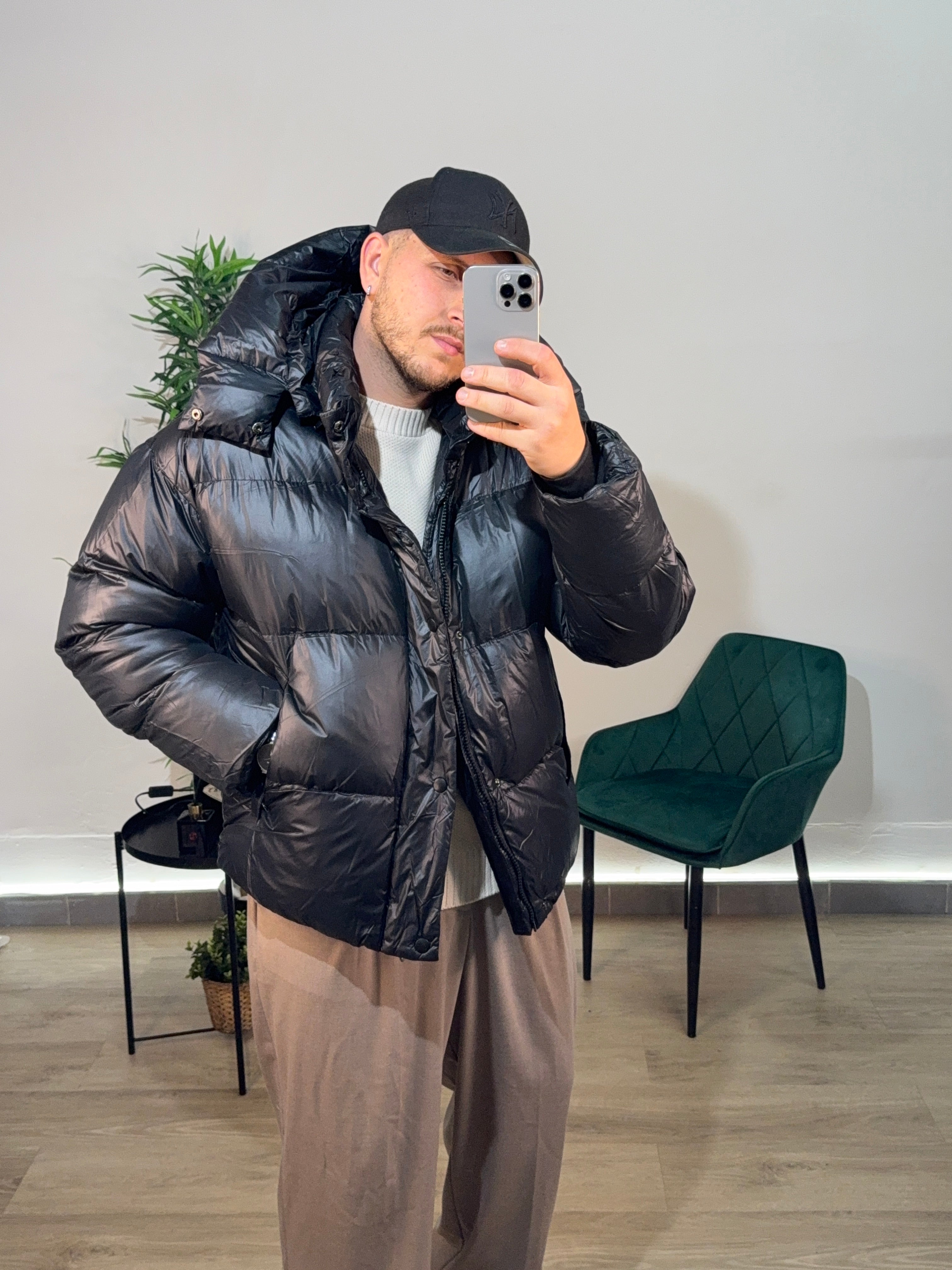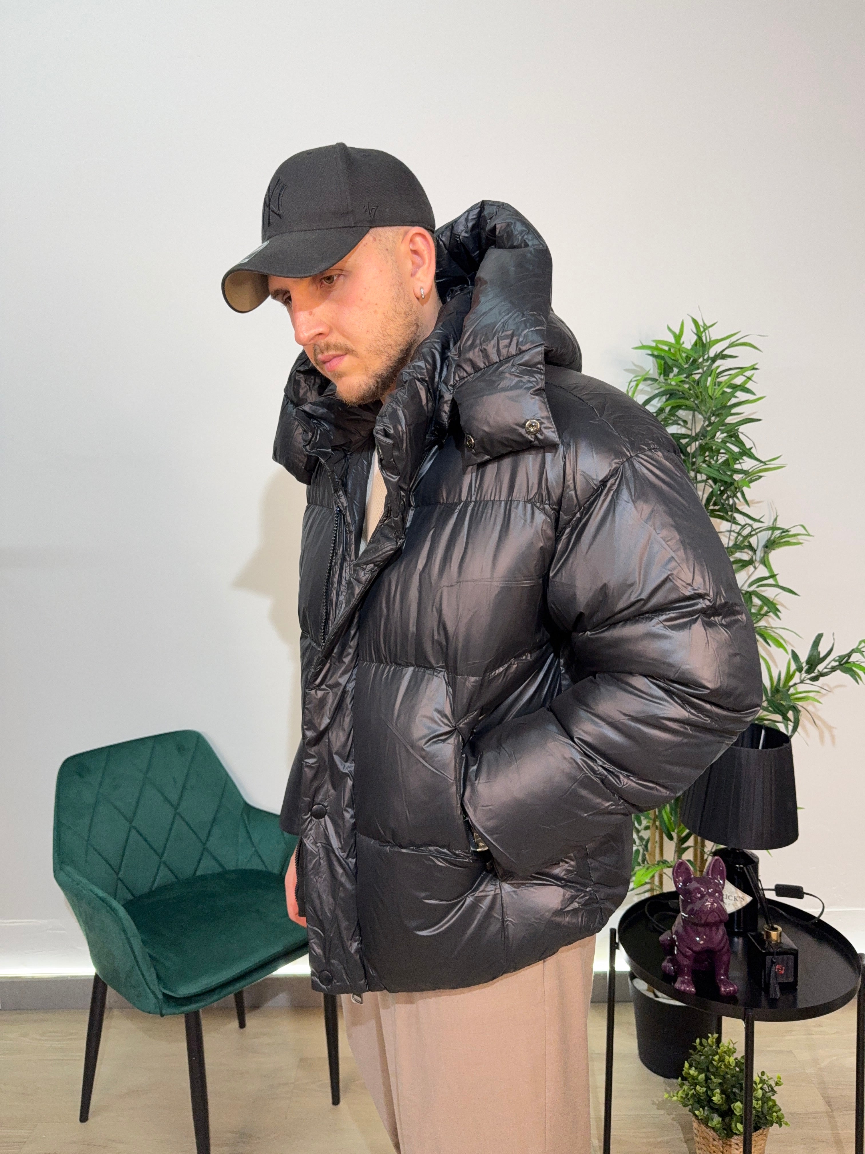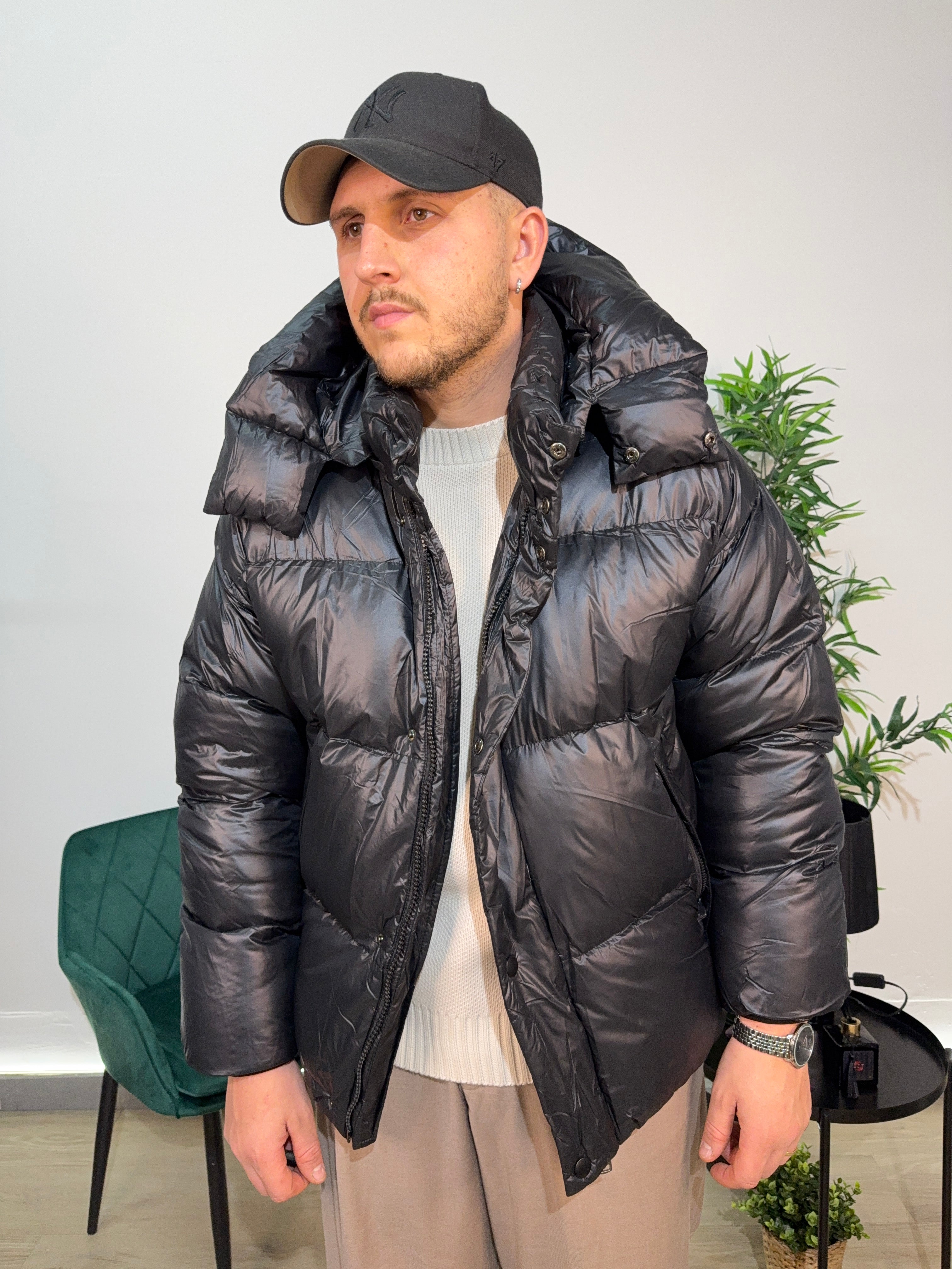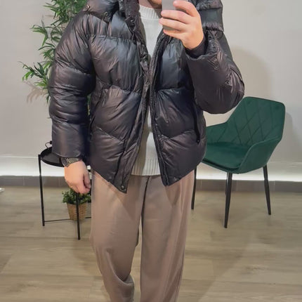 Bomber con cappuccio, elastico in vita.