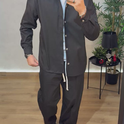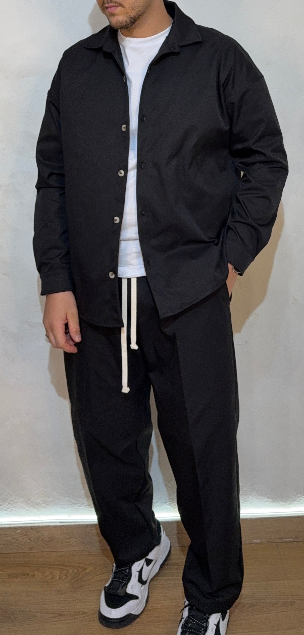 Coordinato tessuto tecnico, composto da: camicia con bottoni madreperla. Pantalone modello japan.