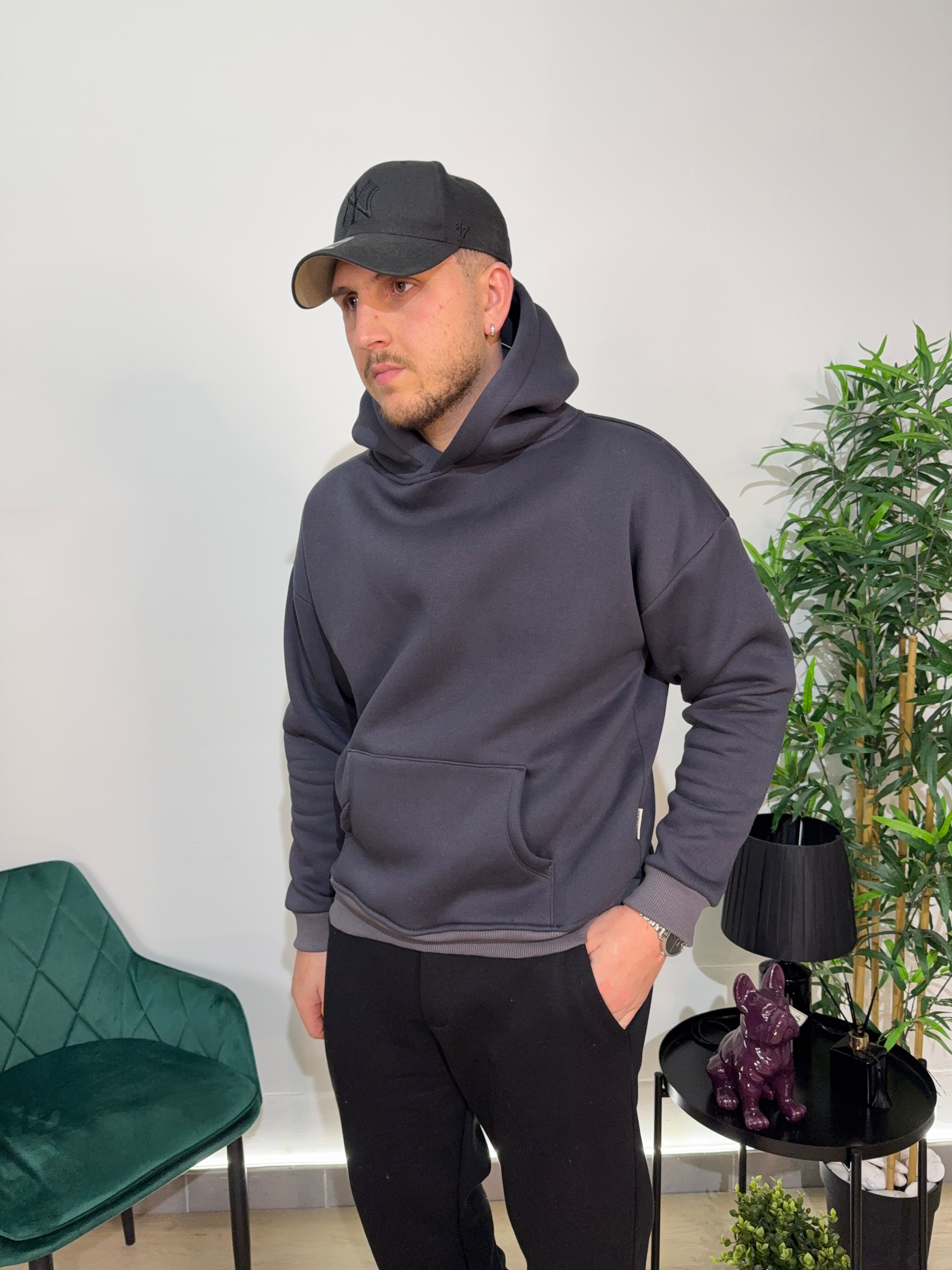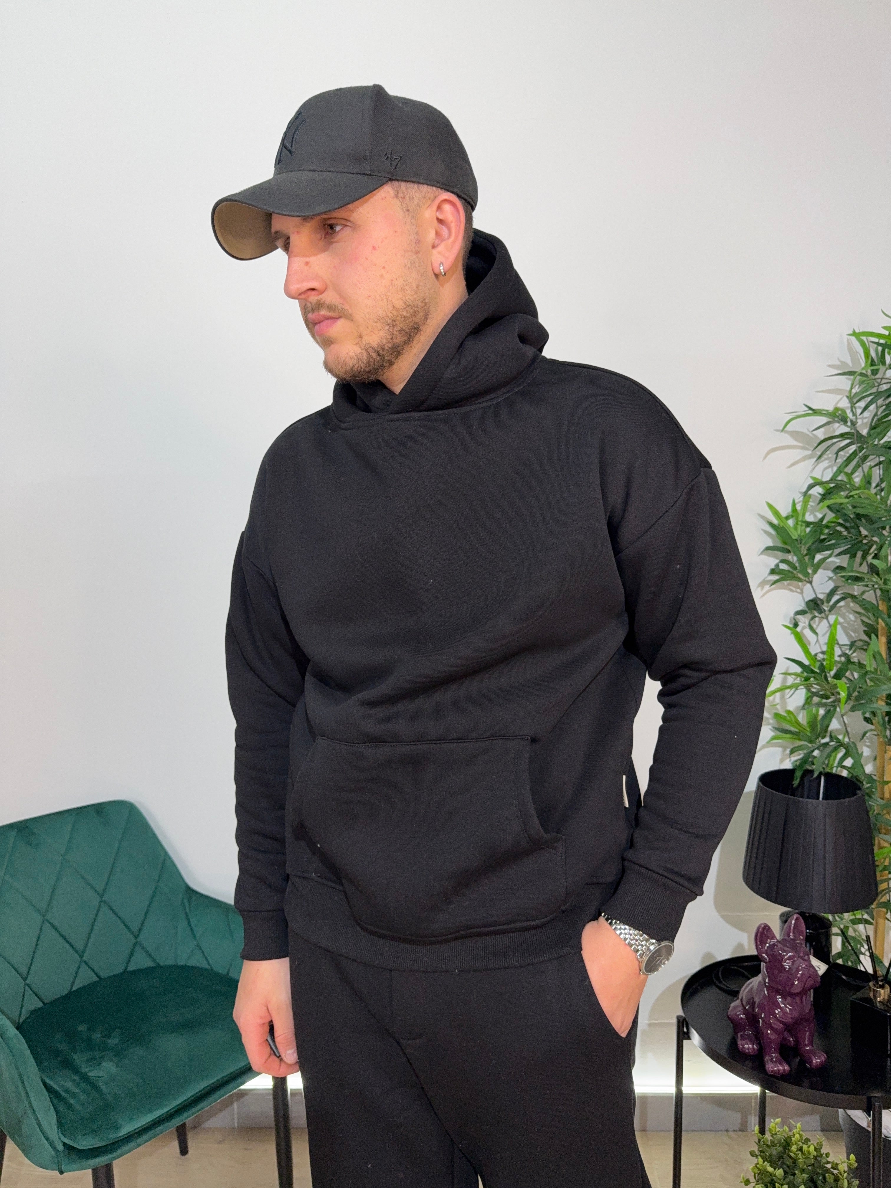 "Hoodie nero semplice ma d’effetto. Si abbina con tutto, qualità migliore di quanto mi aspettassi."