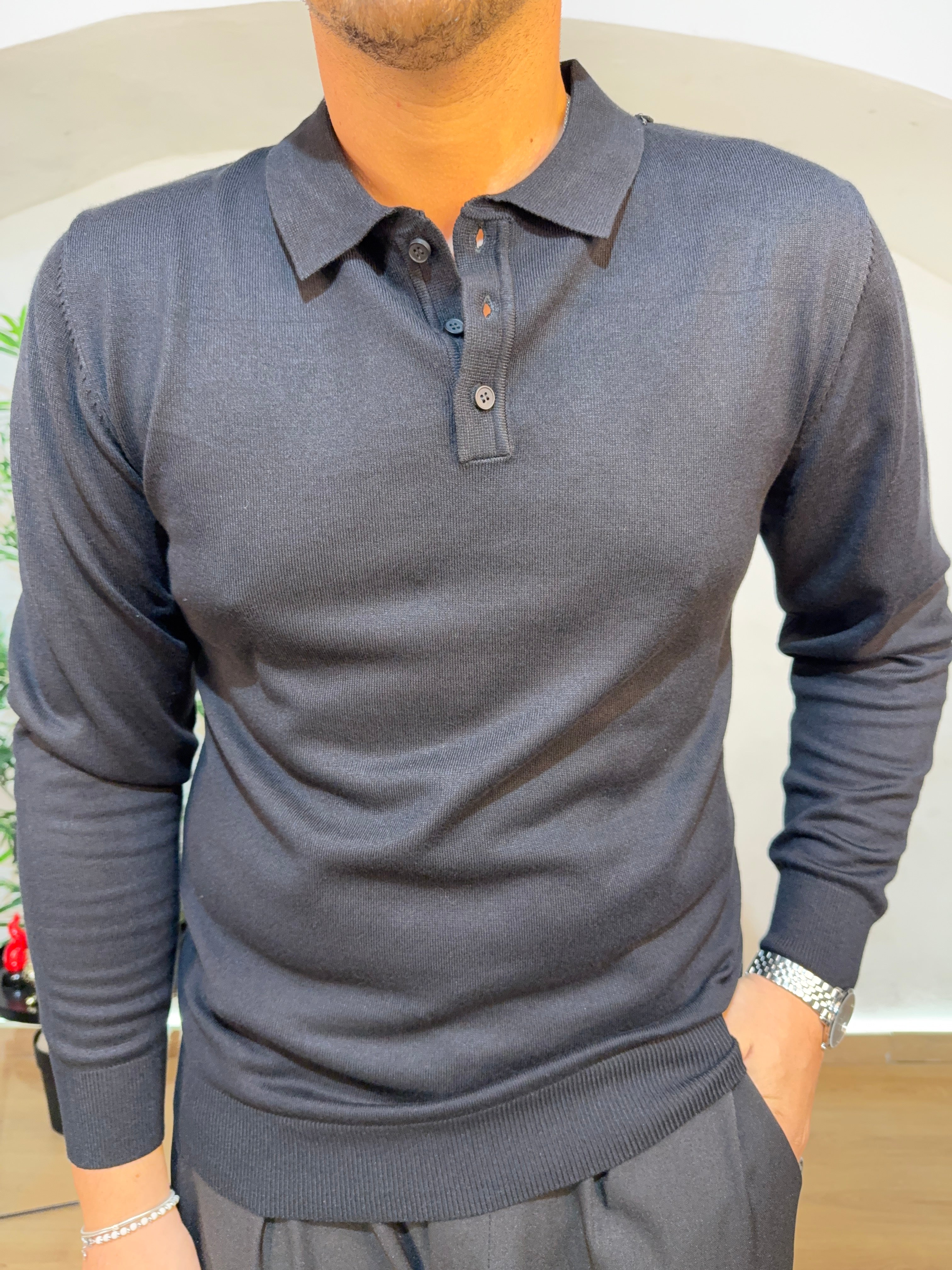 Polo chiusura tre bottoni, con colletto, modello slim.