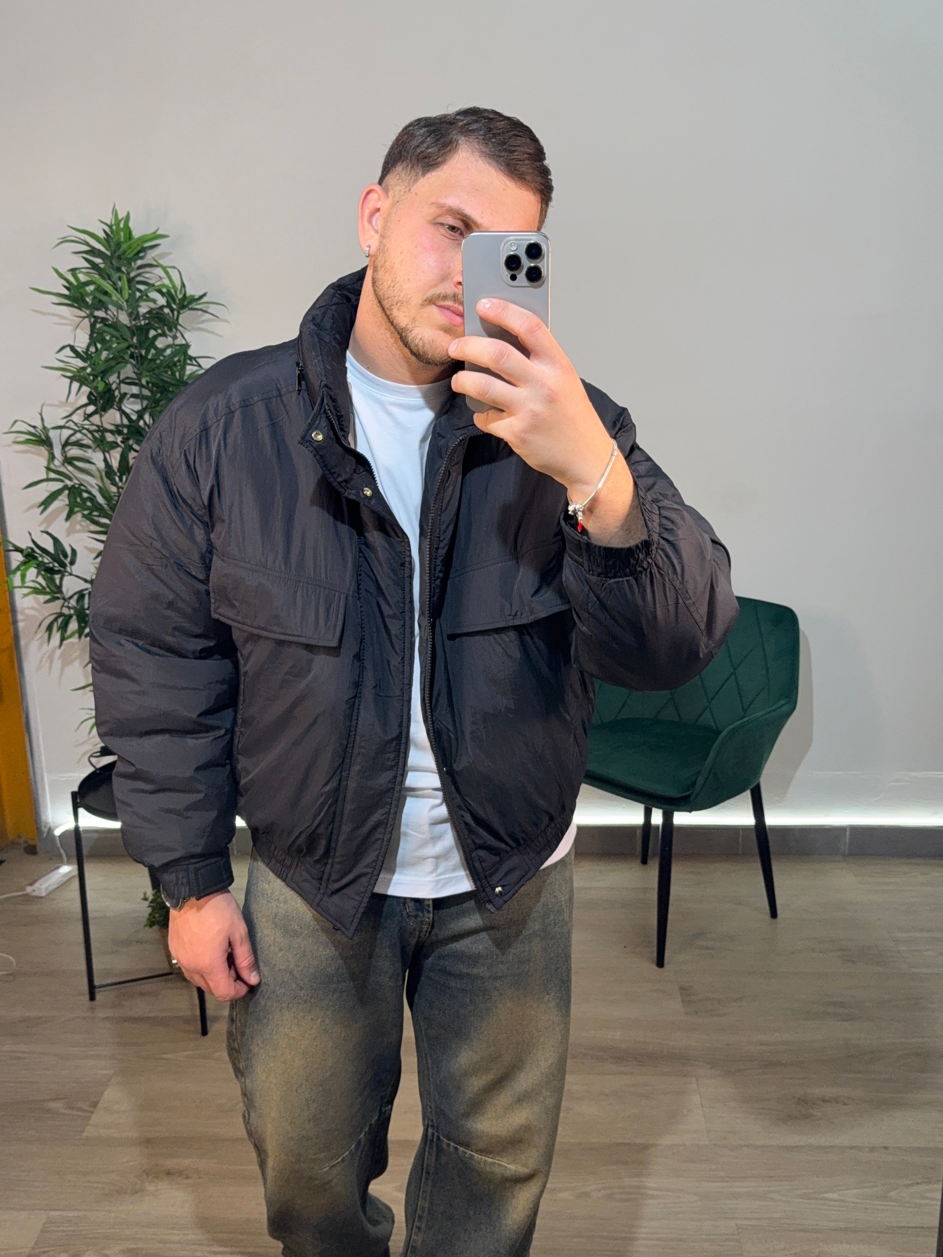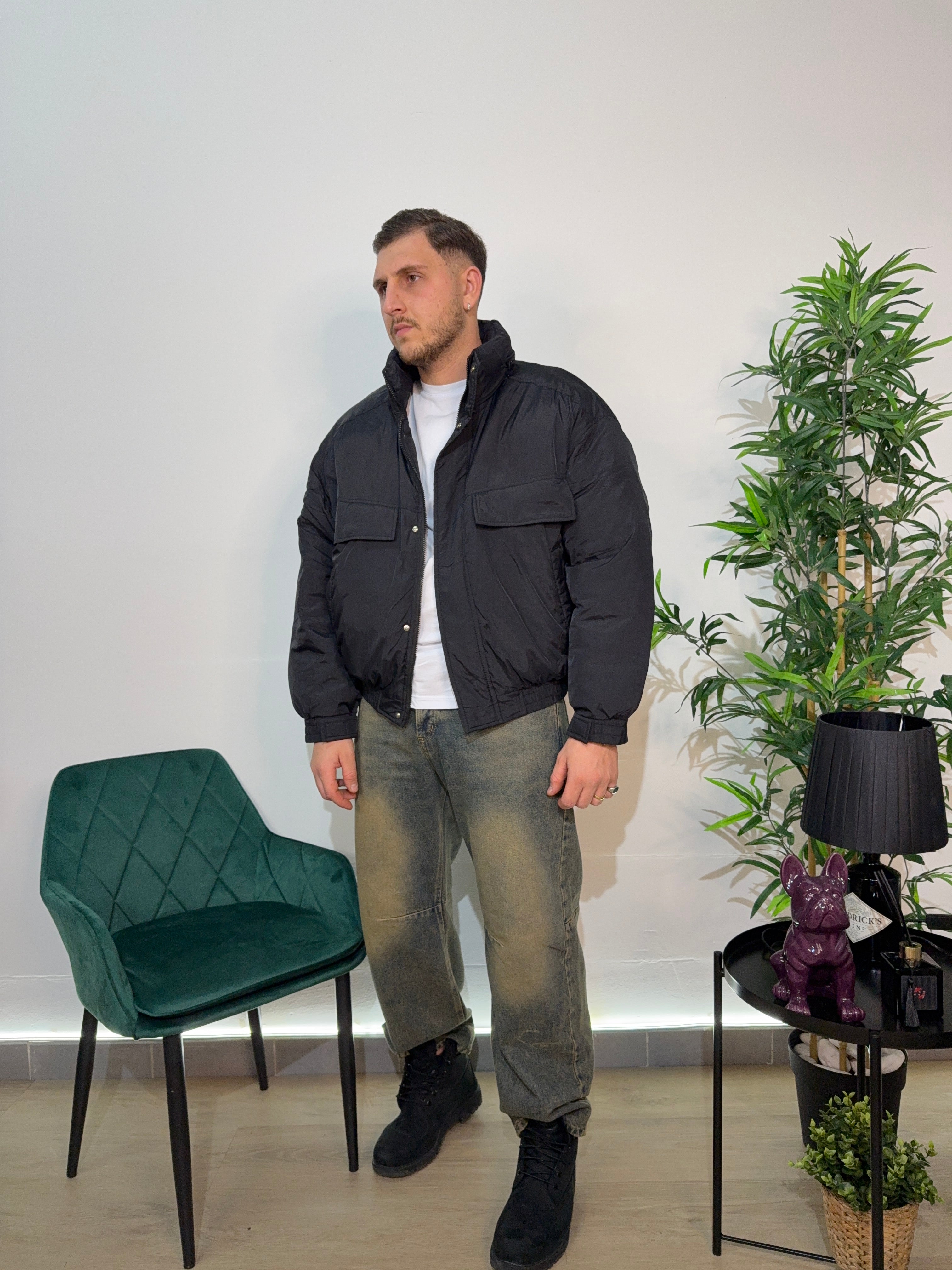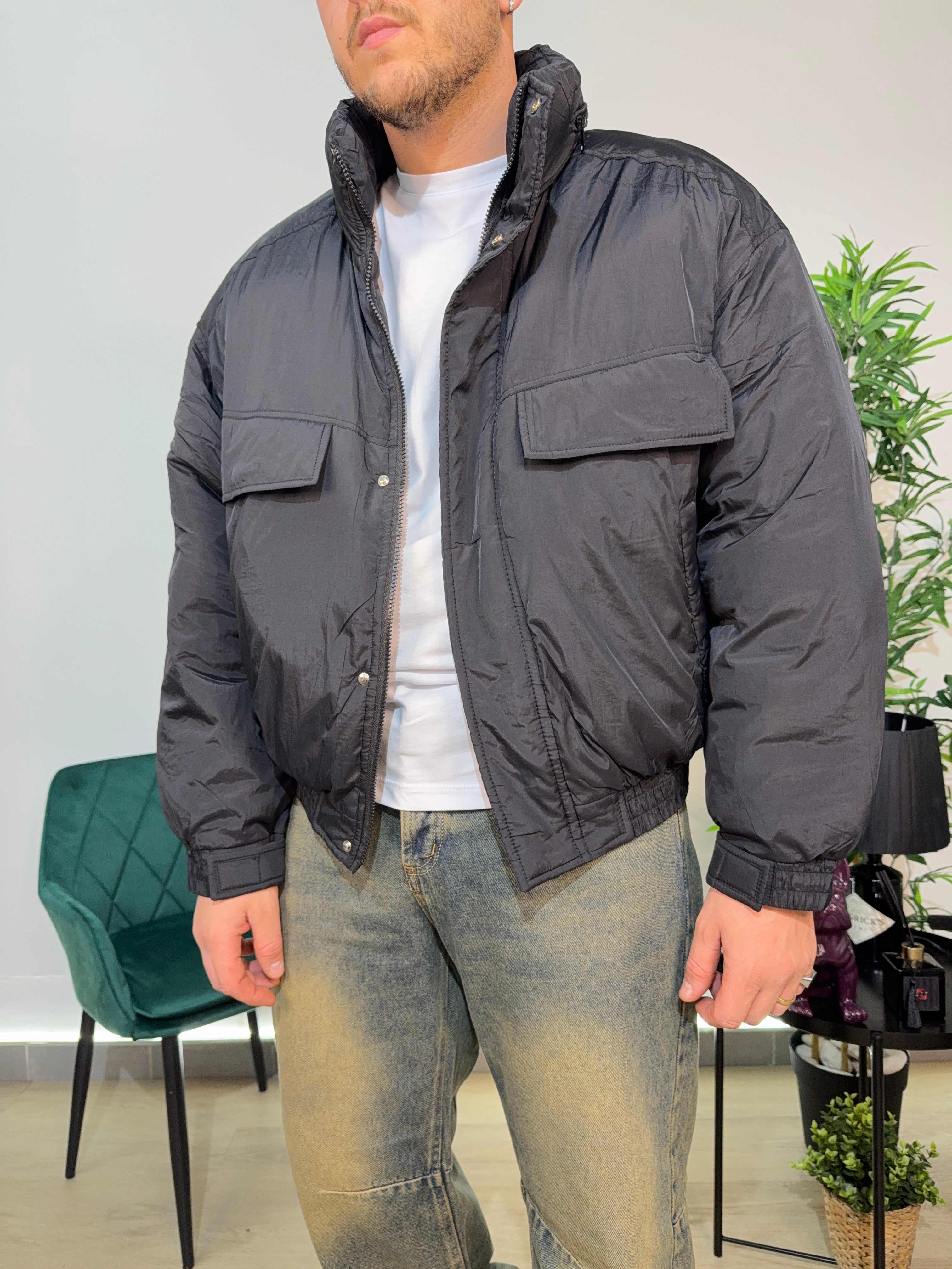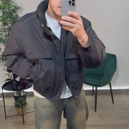 Giubbino modello bomber, tasconi sul davanti, modello crop